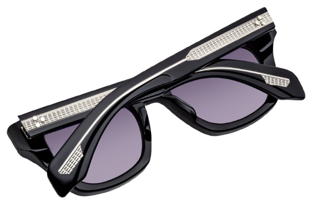 Icône intemporelle de JMM, ce modèle classique est réinterprété avec un sens du détail remarquable : rivets frontaux en forme de flèche sublimés par des incrustations d’époxy peintes à la main, branches révélant une armature métallique apparente au motif distinctif « baguette », rivets signature en forme d’éperon et charnières sur mesure à 7 fûts ornées de finitions hairline d’une grande finesse.
