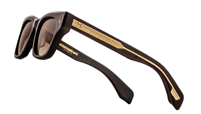 Icône intemporelle de JMM, ce modèle classique est réinterprété avec un sens du détail remarquable : rivets frontaux en forme de flèche sublimés par des incrustations d’époxy peintes à la main, branches révélant une armature métallique apparente au motif distinctif « baguette », rivets signature en forme d’éperon et charnières sur mesure à 7 fûts ornées de finitions hairline d’une grande finesse.