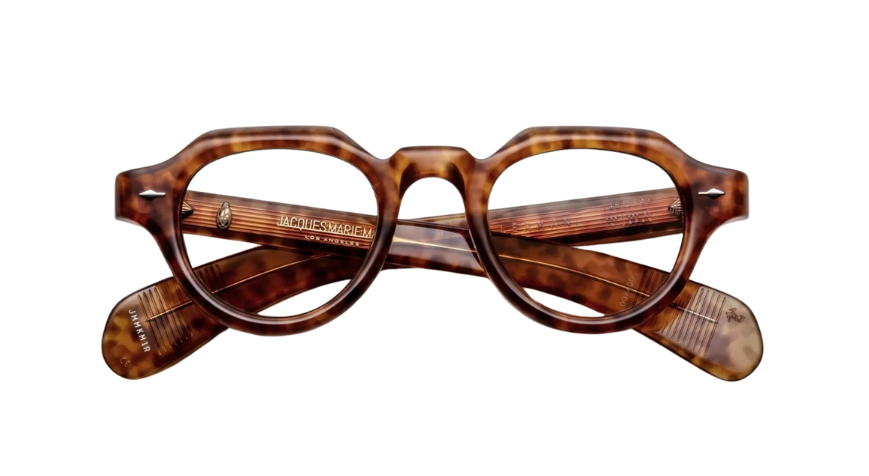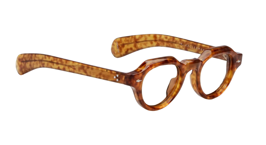 Monture de forme arrondie en acétate de cellulose 10mm, de couleur écaille claire, détails en argent sur les branches.