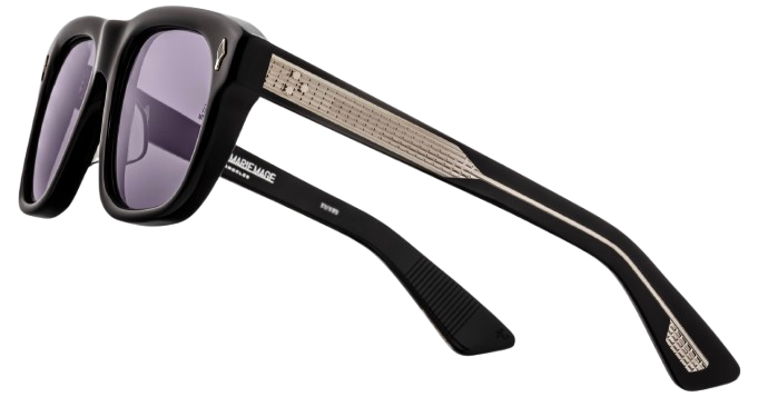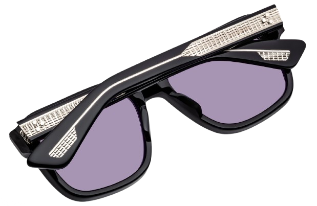 An iconic JMM silhouette, reimagined with exceptional detailing: custom arrowhead front pins adorned with hand-painted epoxy inlays, exposed temple wirecores featuring a distinctive “baguette” pattern, our signature spur-shaped rivets, and bespoke 7-barrel hinges finished with refined hairline engravings.