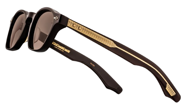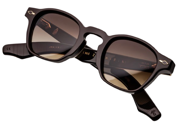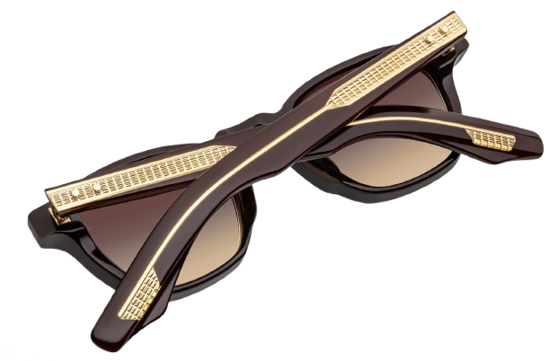 Une icône JMM aux proportions inspirées de l’avant-guerre, revisitée avec des détails d’exception : pins frontaux en forme de flèche avec incrustations d’époxy peintes à la main, branches à armature apparente au motif « baguette », rivets signature en forme d’éperon et charnières sur mesure à 5 fûts finement gravées.
