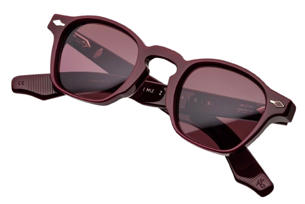 Une icône JMM aux proportions inspirées de l’avant-guerre, revisitée avec des détails d’exception : pins frontaux en forme de flèche avec incrustations d’époxy peintes à la main, branches à armature apparente au motif « baguette », rivets signature en forme d’éperon et charnières sur mesure à 5 fûts finement gravées.