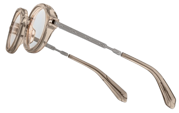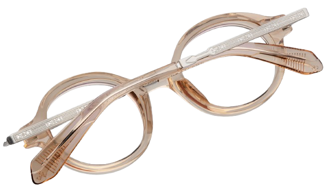 Distinctive eyewear featuring a subtly reimagined oval silhouette, designed for a precise fit and a balanced aesthetic. The titanium temples are finely engraved and equipped with our signature arrowhead monoblock hinges, finished with sculptural acetate temple tips.