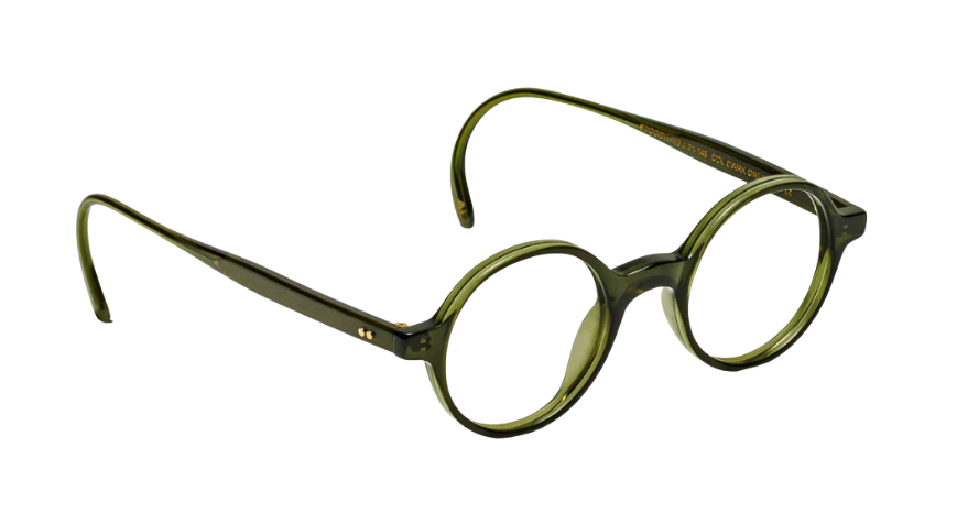 Monture ronde en acétate de cellulose de couleur vert foncé.