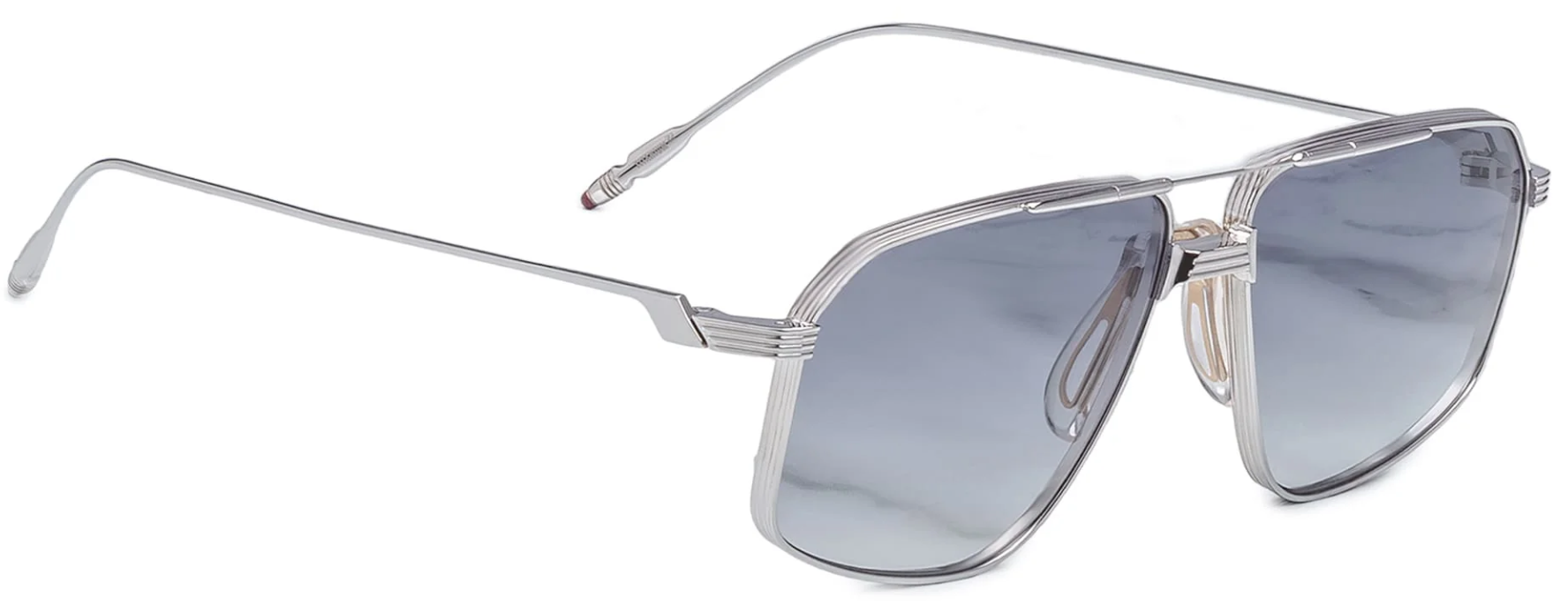 Aviator-shaped frame in silver plated Japanese beta-titanium and white gold details