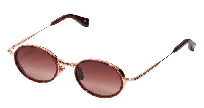 The acetate temples extend seamlessly into sculpted metal tips, conceived as a natural continuation of the frame’s architecture. The titanium core structure is finished in rose gold (5 µ), with a jeweler’s hallmark discreetly placed on the inside of the temple. The temple tips and rims are crafted in dark brown tortoiseshell acetate.