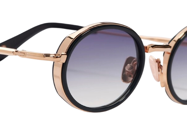 Monture unisexe de forme ovale, associant une structure interne en titane, des détails métalliques et des éléments en acétate dans une esthétique raffinée. Le design se distingue par un pont projeté intégrant des plaquettes de nez en titane fixées par une extension métallique. Les branches en acétate se prolongent naturellement par des embouts métalliques sculptés, avec de subtiles variations d’épaisseur et des finitions finement striées.