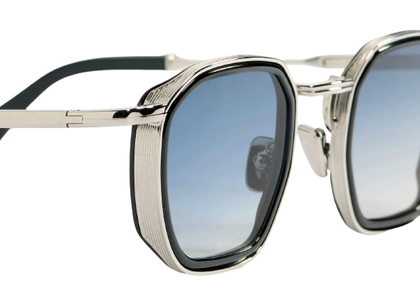 Monture unisexe au design graphique affirmé, caractérisée par des cercles sculptés dans une bande de métal gravée de 8 mm. Son esthétique est sublimée par un nouveau pont géométrique, tandis que les embouts traditionnels viennent équilibrer l’ensemble avec élégance.