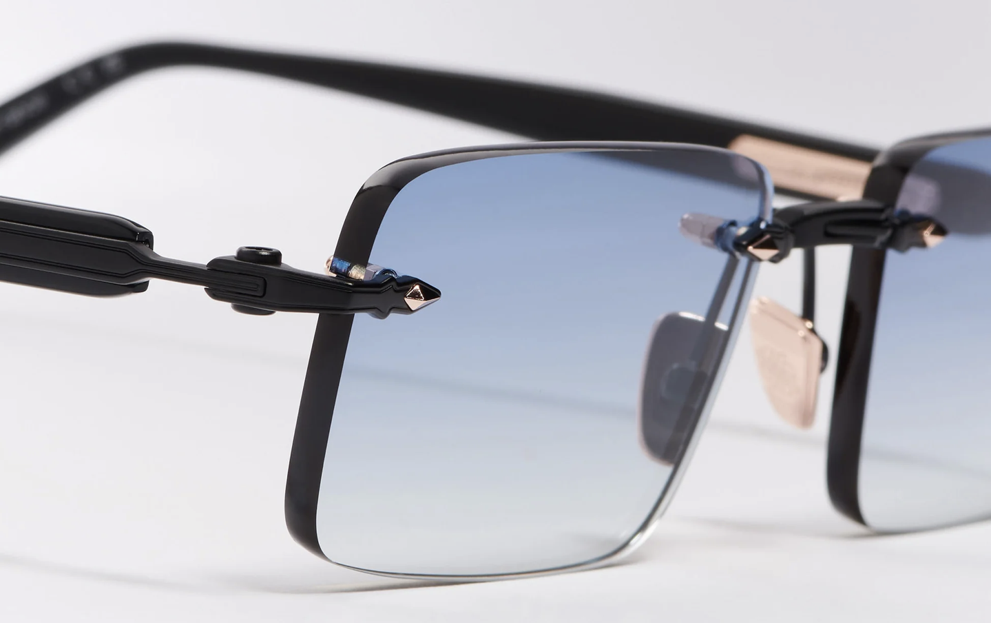 Le fil métallique en acier inoxydable plaqué or rose (5 µ) témoigne d’un savoir-faire soigné et est sublimé par un poinçon de joaillier apposé sur la face intérieure de la branche. Les embouts se déclinent dans un noir effet charbon, ajoutant une touche de contraste raffinée.