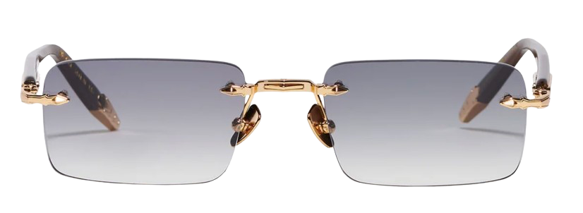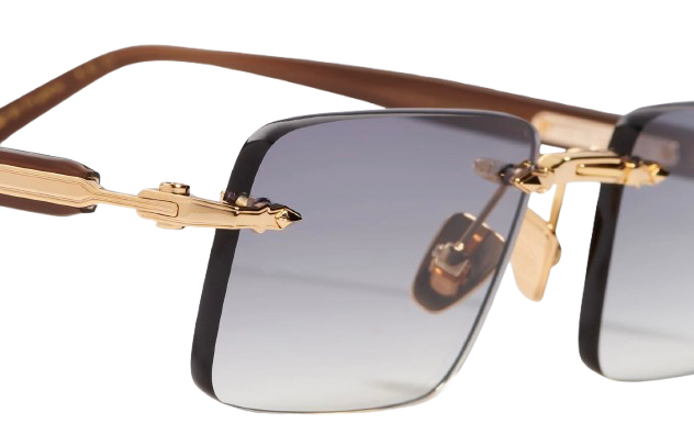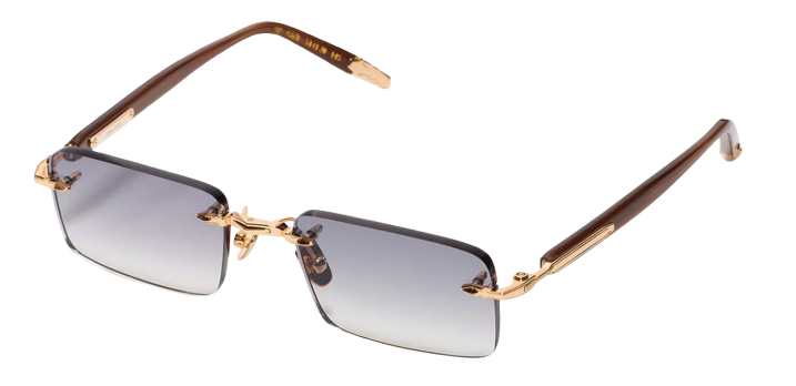 Unisex rimless rectangular frame, defined by a wide bridge and finely grooved temples. The design is completed with elongated acetate temple tips, providing comfort and balance. The metal corewire is crafted from platinum-plated stainless steel (3 µ) and features a jeweler’s hallmark engraved on the inner temple.