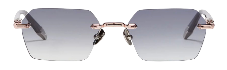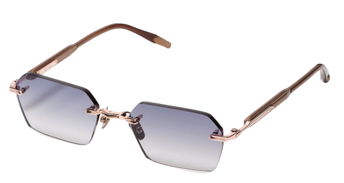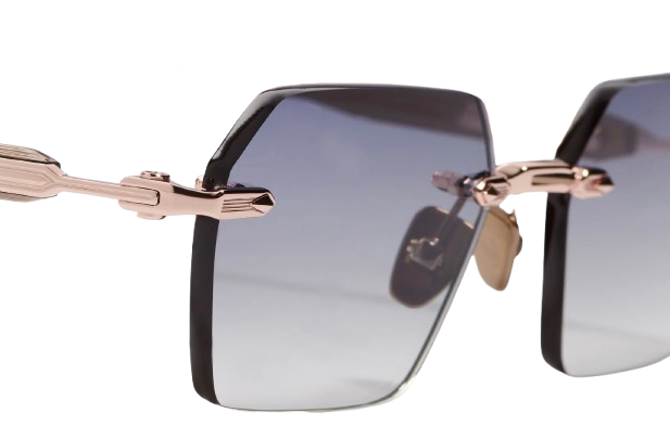 This unisex rimless frame stands out with a sharp rectangular shape and a bold character, enhanced by a wide bridge and finely grooved temples. The elongated acetate temple tips provide both comfort and elegance.